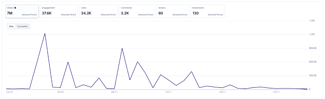 Engagement remained healthy throughout the campaign, with several sharp view spikes driven by short-form trading & lifestyle edits.