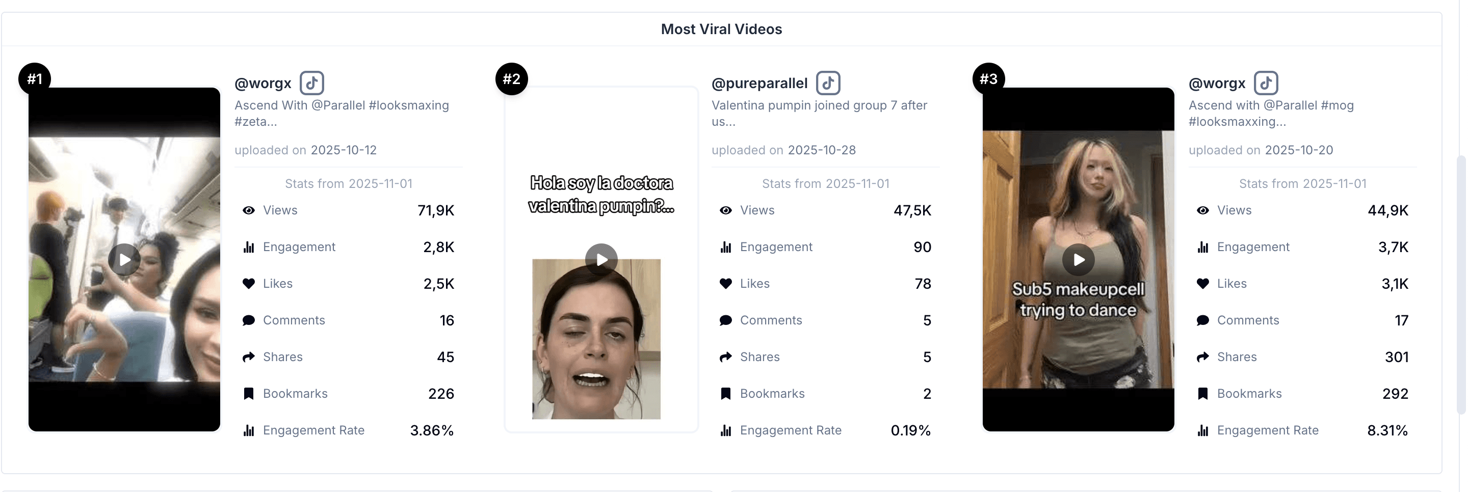 Key Theme: “Ascend with Parallel” and “Group 7” narratives continue to drive virality, with short, trend-responsive edits performing best.