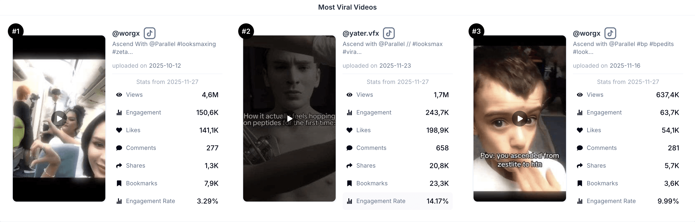 The campaign achieved solid multi-account performance, generating 8,6 million total views with consistent daily engagement peaks throughout late November.